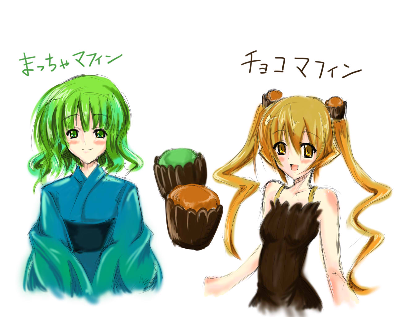 この前もらった抹茶とチョコのマフィンを擬人化した・・・も・・・の。
